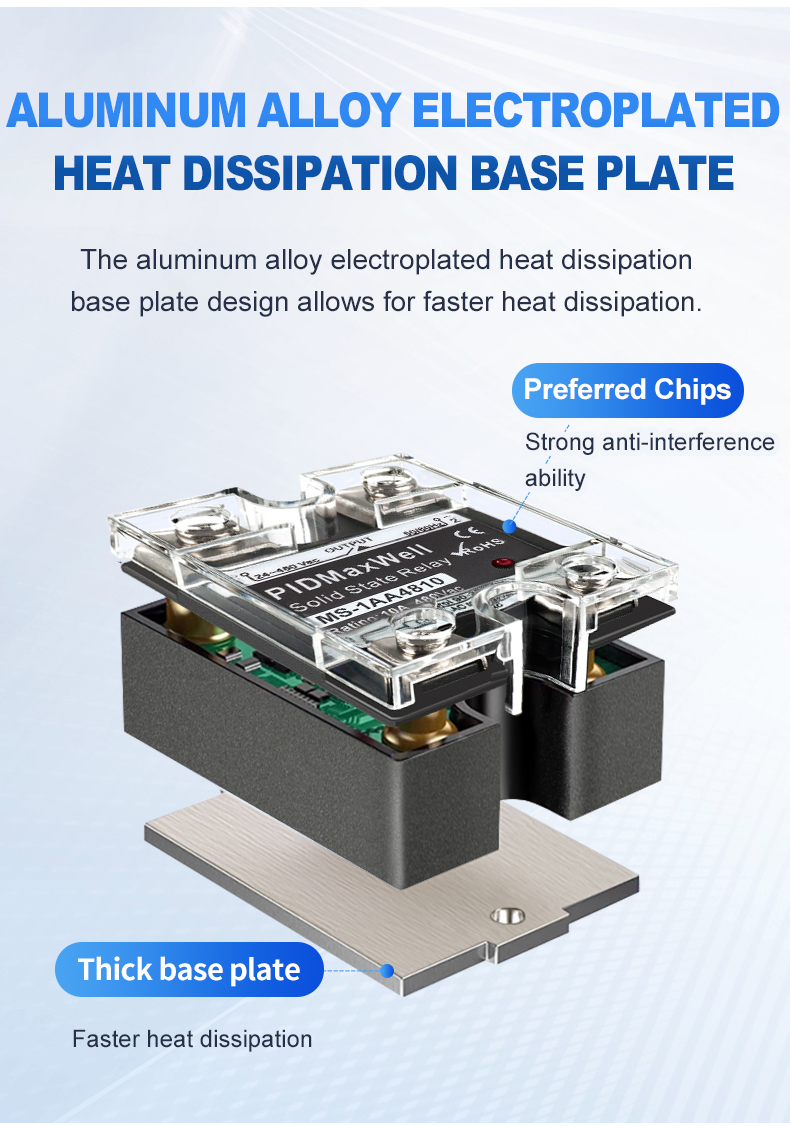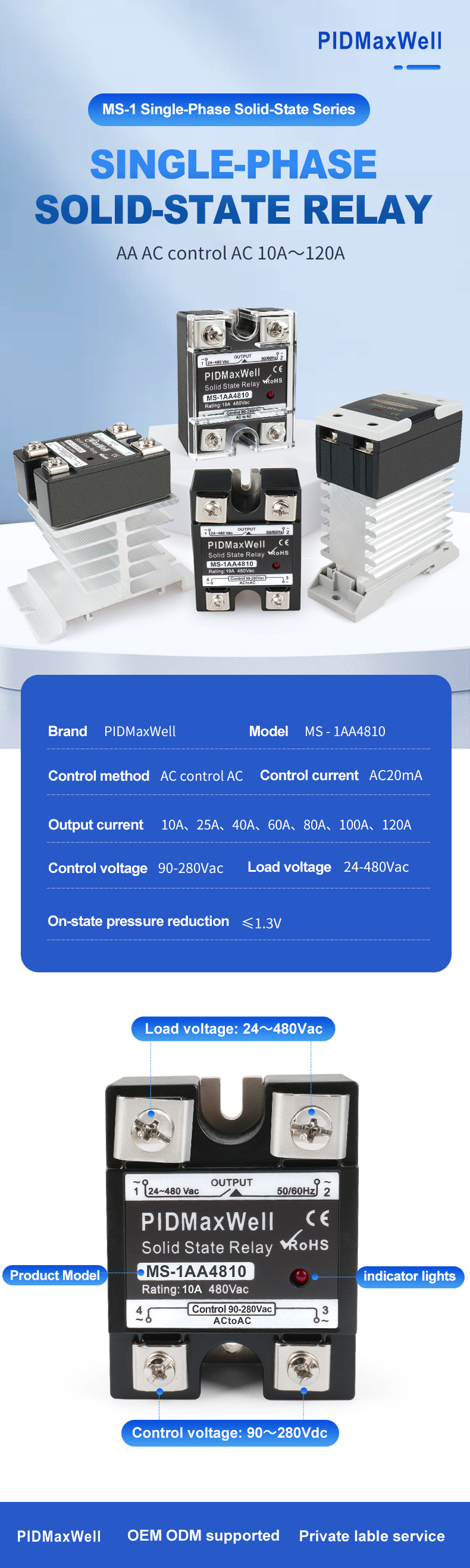 Твердотельное реле серии MS-1AA4840 разработано для универсального и надежного применения в широком спектре промышленных и коммерческих областей. Его триггер с переходом через ноль и встроенный RC-демпфер делают его исключительно подходящим для управления резистивными и индуктивными нагрузками без генерации электрических помех. Вход управления 90–280 В переменного тока позволяет напрямую подключаться к стандартным цепям управления сетевого напряжения, упрощая проектирование системы и уменьшая потребность в дополнительной обработке сигнала. Типичные области применения включают точное регулирование температуры в камерах с высокими и низкими температурами, промышленных нагревателях и инкубаторах. Оно также широко используется в оборудовании для обработки пластмасс, смазочных машинах и системах ОВКВ для эффективного переключения питания. Кроме того, его прочная конструкция обеспечивает надежную работу в системах управления освещением лифтов, контроллерах фонтанов и других автоматизированных системах, требующих частого и надежного переключения переменного тока.